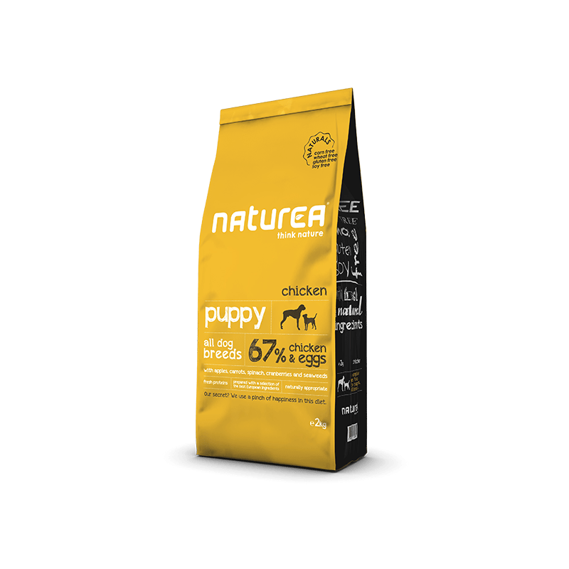 Naturea Naturals Puppy Chicken  – tai aukščiausios klasės šunų maistas su vištiena, kurią papildo vertingi rudieji ryžiai, vaisiai, daržovės, vaistinės ir prieskoninės žolelės  bei jūros dumbliai. Maistas skirtas visų veislių jauniems šunims.